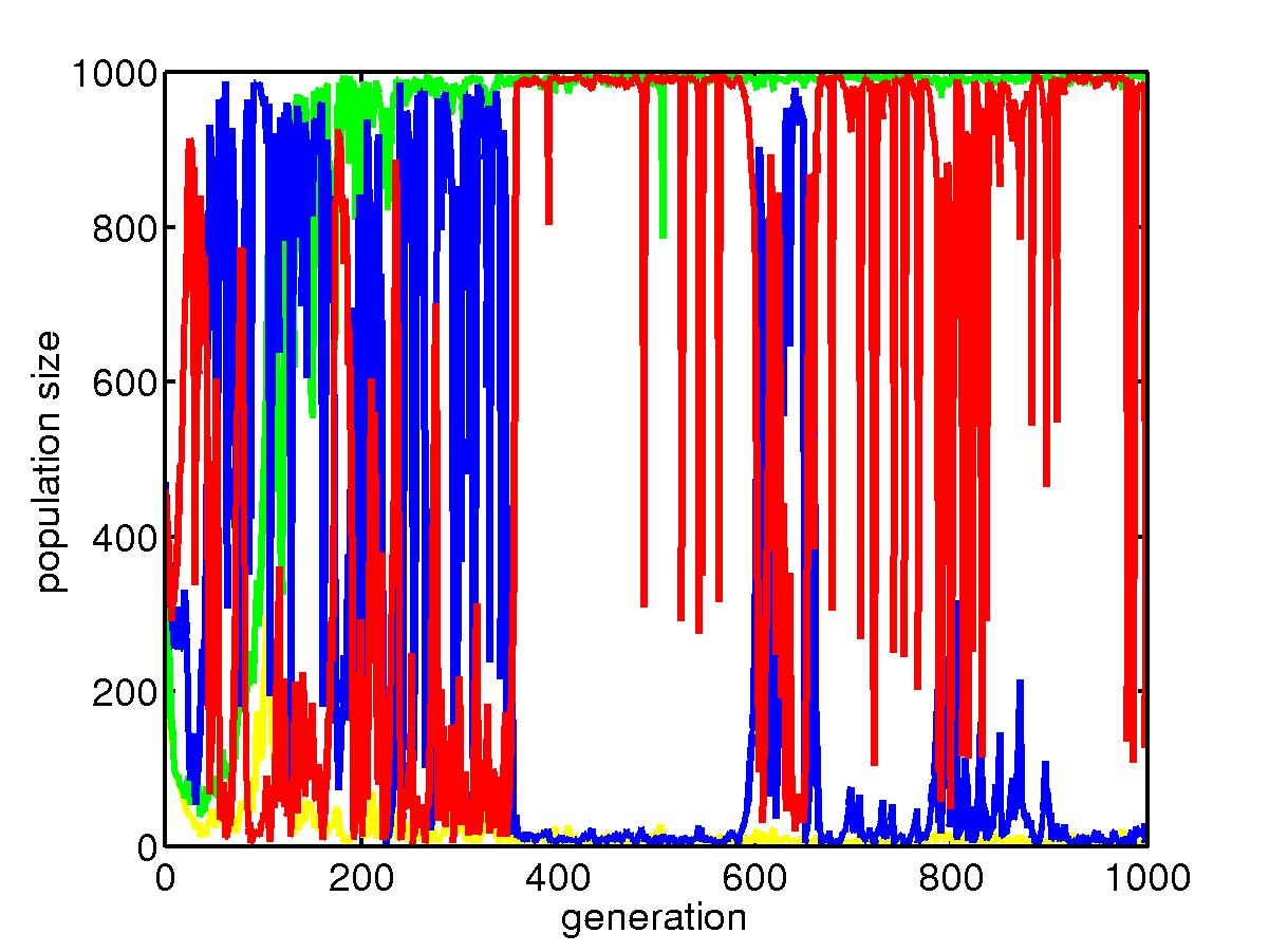 yellow line is for fast mutators in the uniform niche, which is squeezed