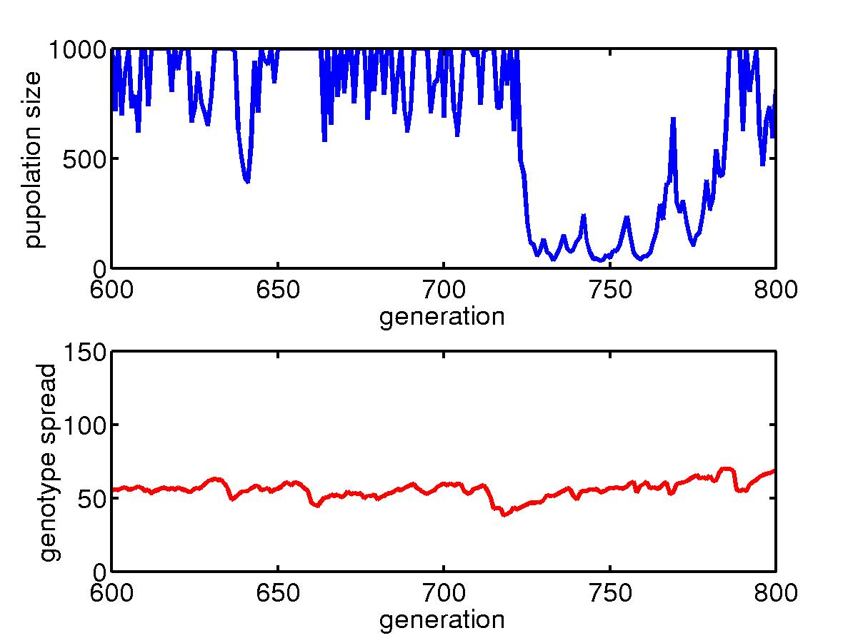 The spread of genotype in a niche, also goes down as the diversity decreases.