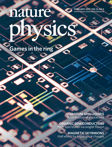 Featured on the cover of the February 2017 issue of Nature Physics: Our article on superconducting circuits, coupled to form a ring in which a photonic excitation can circulate between sites, being established as a versatile platform for studying the interplay of strong particle interactions and external fields.